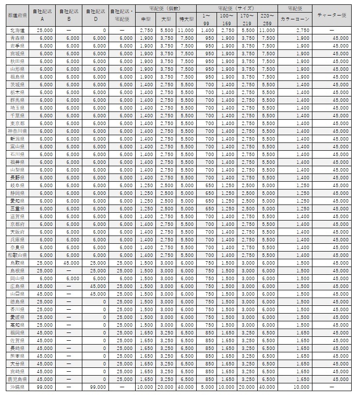 ※当日荷受人様が居られない場合は一度持ち帰ることとなり、その場合持ち帰り運賃、